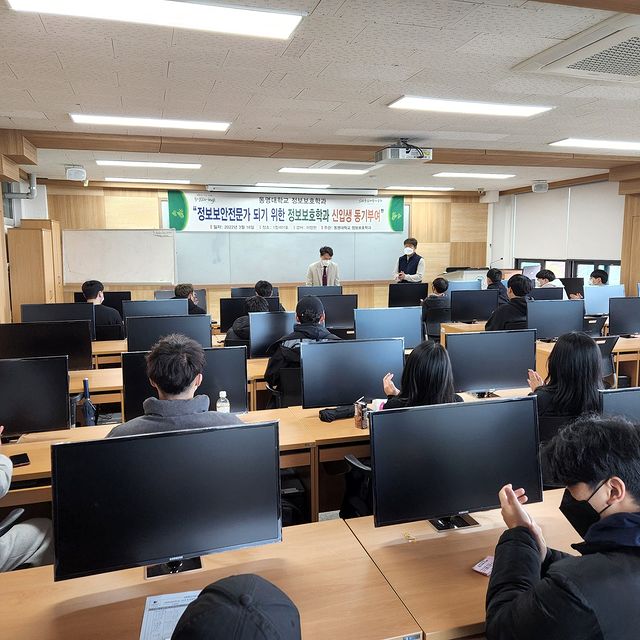 모든 커리어 컨설턴트 전문가들이 인정하는 미래 유망 직업 Future IT Security 인재양성 동명대학교 소프트웨어융합보안학과는 21C 지식정보화 사회를 이끌어갈 컴퓨터 보안전문가, 인터넷/네트워크 전문가,암호 전문가, 유비쿼터스 보안전문가 등의 전문 인력을 양성하고 있습니다. 평소 컴퓨터 및 정보통신에 관심을 가지고 있는 사람이라면 누구나 재미있게 공부할 수 있습니다. 저희들과 함께 Future it security 전문가로 나아갑시다. ✔️저희학과에대해 질문사항이 있으신분들은 댓글달아주시면 성심성의껏 답변해드리겠습니다!👐