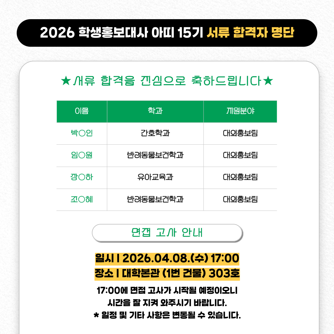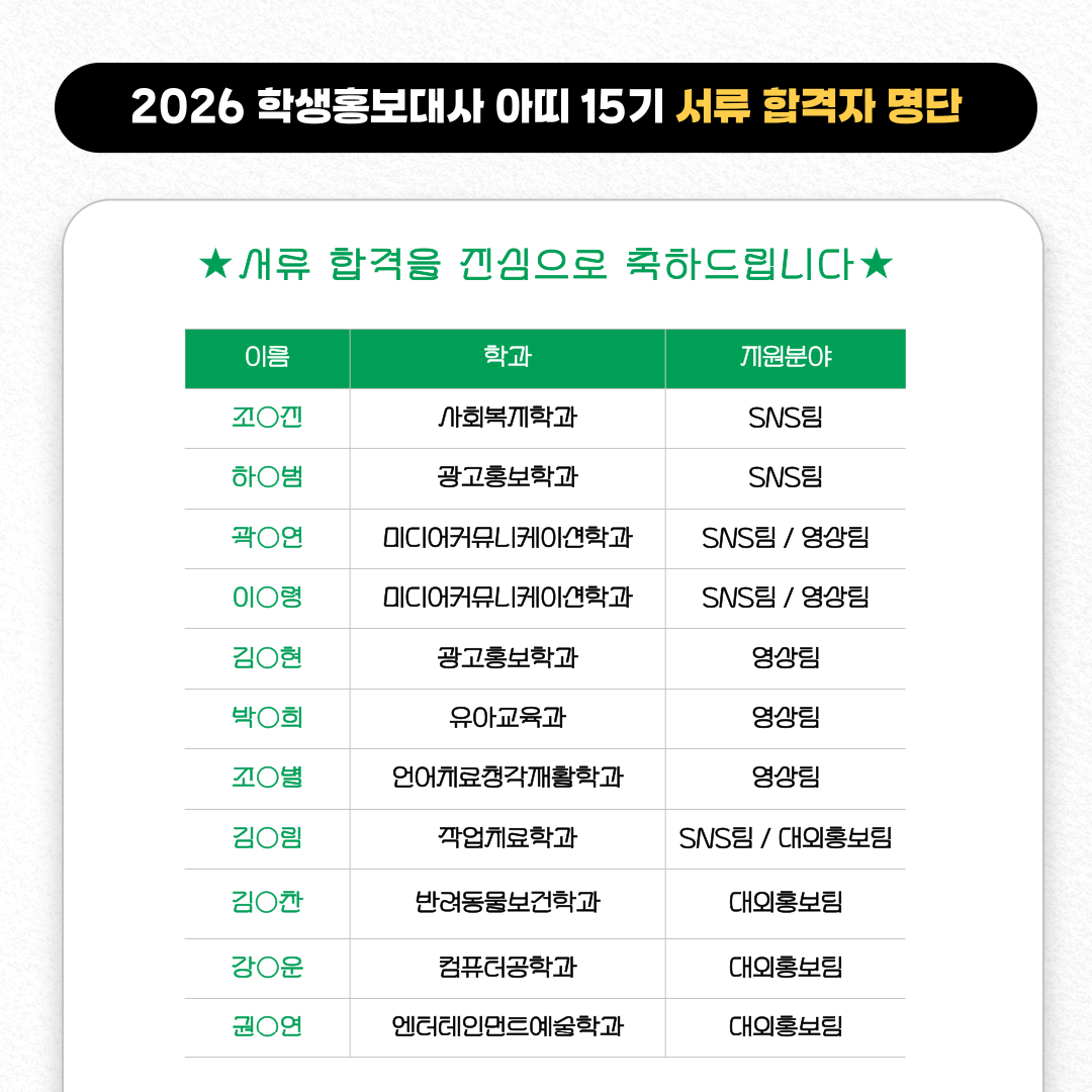 학생홍보대사 아띠 15기 서류 합격자 발표